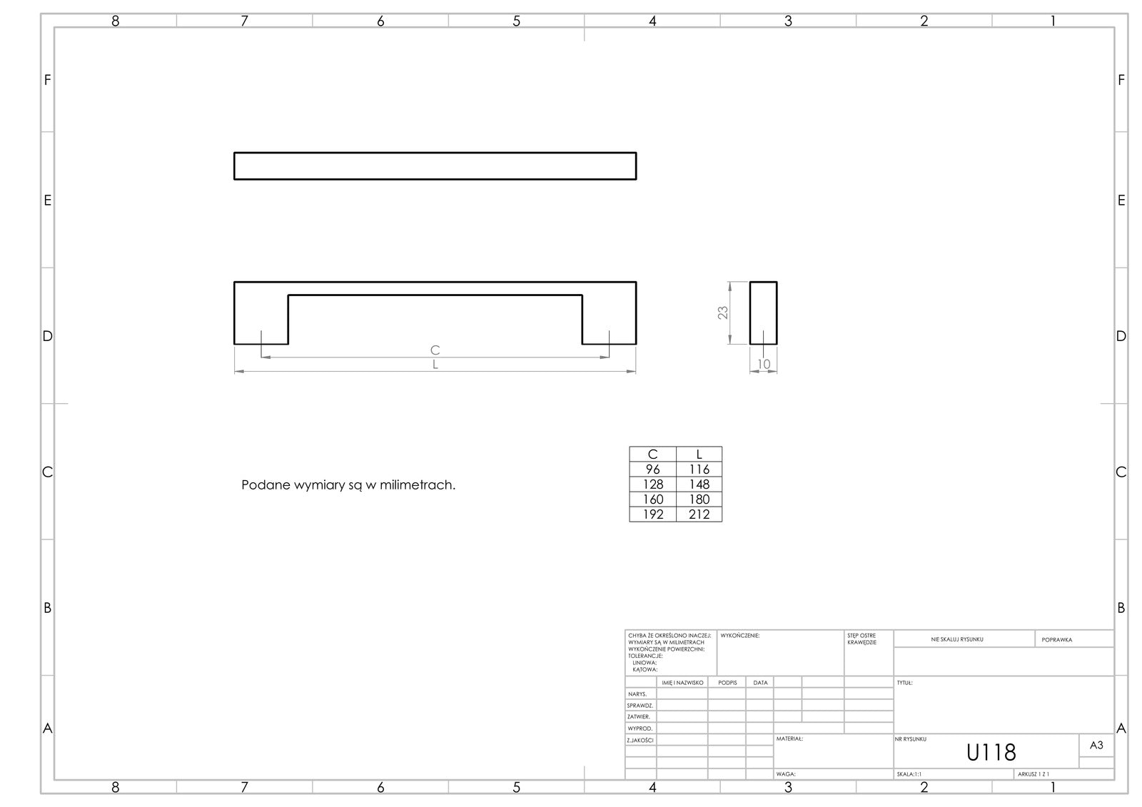 Uchwyt meblowy U118 zwraca uwagę prostym wzornictwem. Jego prostokątny kształt sprawdzi się zarówno we wnętrzach miłośników klasyki, jak i przestrzeniach zaaranżowanych całkowicie nowocześnie. Zadowoli właścicieli mieszkań, którym zależy na prostocie i elegancji elementów wykończeniowych, tak aby wnętrze nie sprawiało wrażenia nadmiernie przeładowanego.